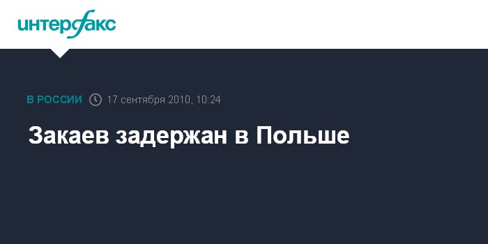 Москва. 17 сентября. ИНТЕРФАКС - Польская полиция в пятницу задержала эмиссара чеченских боевиков Ахмеда Закаева, сообщает телеканал "Россия 24".