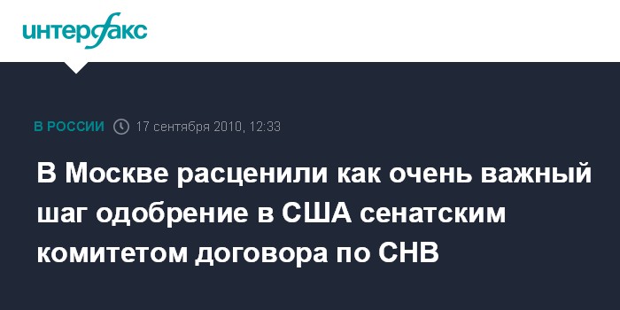 В Москве расценили как очень важный шаг одобрение в США сенатским комитетом договора по СНВ