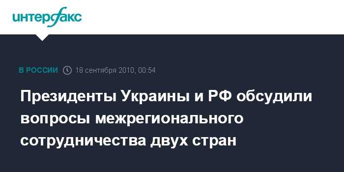 Завидово (Московская область). 17 сентября. ИНТЕРФАКС - Президент Украины Виктор Янукович заявил, что вопросы межрегионального сотрудничества между украинской и российской сторонами зависят от политической воли глав обоих государств.
