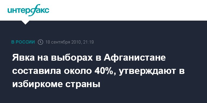 Лондон. 18 сентября. ИНТЕРФАКС - По предварительным данным, число проголосовавших на парламентских выборах в Афганистане составляет около 40%, заявил один из руководителей избиркома страны Фазиль Ахмад Манави.