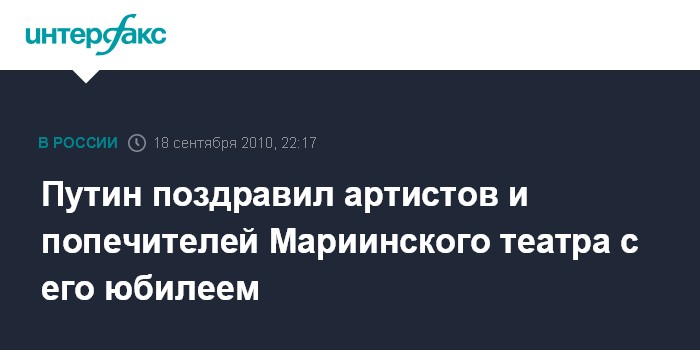 Путин поздравил артистов и попечителей Мариинского театра с его юбилеем