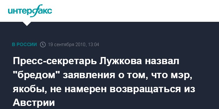 Пресс-секретарь Лужкова назвал "бредом" заявления о том, что мэр, якобы, не намерен возвращаться из Австрии