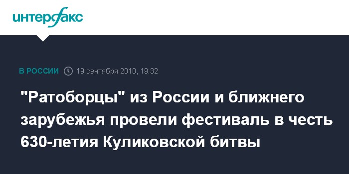 Тула. 19 сентября. ИНТЕРФАКС-ЦЕНТР - Около одной тысячи ратников из военно-исторических клубов из 40 регионов России и стран СНГ приняли участие в XIV Международном военно-историческом фестивале "Поле Куликово", который в воскресенье завершился в музее-заповеднике "Куликово Поле" (Куркинский район, Тульская область).