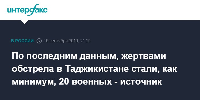 По последним данным, жертвами обстрела в Таджикистане стали, как минимум, 20 военных - источник