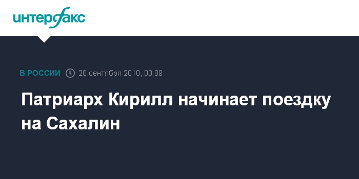 Южно-Сахалинск. 20 сентября. ИНТЕРФАКС - Патриарх Московский и всея Руси Кирилл, совершающий поездку на Дальний Восток, в понедельник прибудет на Сахалин.