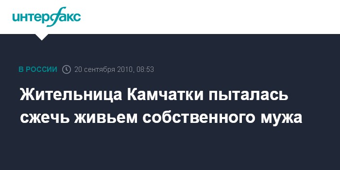 Петропавловск-Камчатский 20 сентября. INTERFAX.RU - Амбулаторное лечение назначено пятидесятилетнему жителю г. Елизово Камчатского края, которого пыталась заживо сжечь собственная супруга.