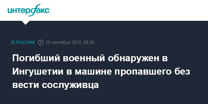 Погибший военный обнаружен в Ингушетии в машине пропавшего без вести сослуживца