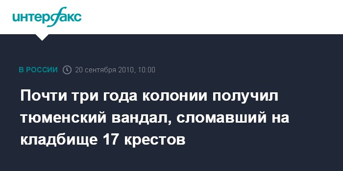 Тюмень. 20 сентября. INTERFAX.RU - В Тюменской области мировой суд Заводоуковского района приговорил 22-летнего Владимира Гергерта, обвиняемого в вандализме, к 2 годам 10 месяцам колонии.