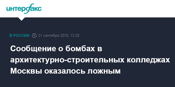 Москва. 21 сентября. INTERFAX.RU - Ни в одном из архитектурно-строительных колледжей на севере Москвы, в которых во вторник искали возможные взрывные устройства, никаких подозрительных предметов не обнаружено, сообщили "Интерфаксу" в префектуре Северного административного округа Москвы.