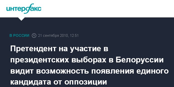 Претендент на участие в президентских выборах в Белоруссии видит возможность появления единого кандидата от оппозиции