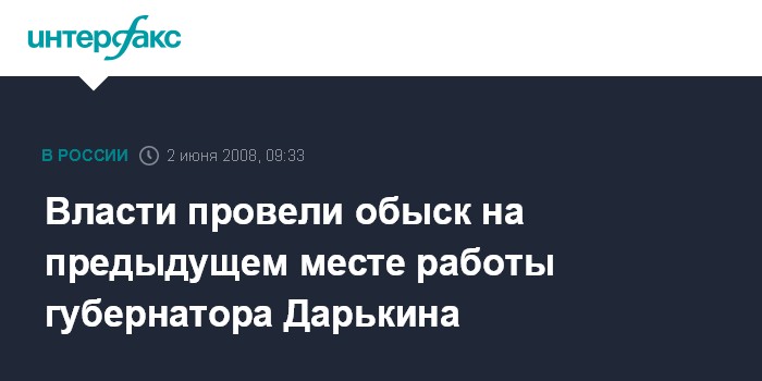 Власти провели обыск на предыдущем месте работы губернатора Дарькина