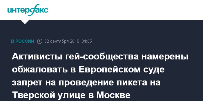 Активисты гей-сообщества намерены обжаловать в Европейском суде запрет на проведение пикета на Тверской улице в Москве