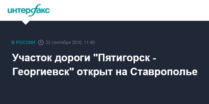 Ставрополь. 22 сентября. INTERFAX.RU - В Ставропольском крае рядом со станицей Незлобная в среду сдан в эксплуатацию участок автомобильной дороги "Пятигорск - Георгиевск" с двухуровневой транспортной развязкой, сообщает пресс-служба главы региона.