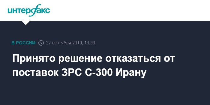 Принято решение отказаться от поставок ЗРС С-300 Ирану