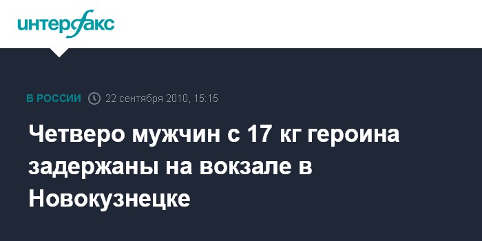 Четверо мужчин с 17 кг героина задержаны на вокзале в Новокузнецке