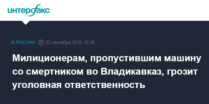 Милиционерам, пропустившим машину со смертником во Владикавказ, грозит уголовная ответственность