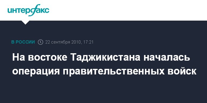 Душанбе. 22 сентября. INTERFAX.RU - Правительственные войска Таджикистана в среду во второй половине дня начали широкомасштабную операцию по зачистке отрядов бывшей оппозиции, сообщили "Интерфаксу" источники в силовых структурах республики.