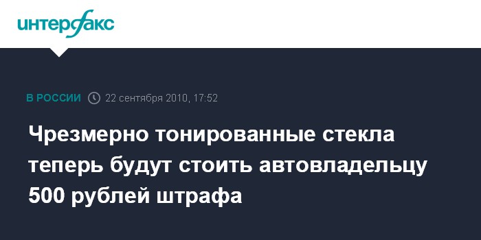 Как сообщил ранее замглавы департамента ОБДД МВД РФ Владимир Кузин, с 23 сентября вступает в силу Технический регламент о безопасности колесных транспортных средств и поправки в КоАП РФ, повышающие штраф за чрезмерно затемненные стекла со 100 до 500 рублей.