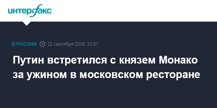 Путин встретился с князем Монако за ужином в московском ресторане