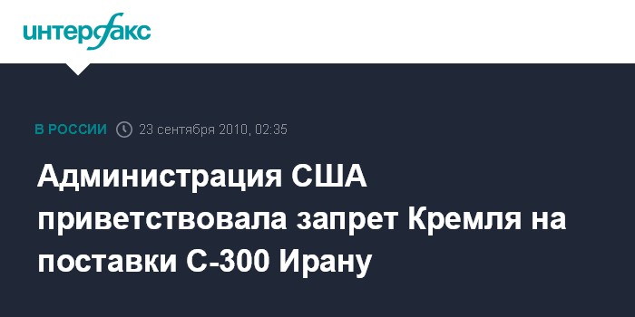 "Белый дом горячо приветствует указ, подписанный президентом России Медведевым, который запрещает передачу передовых вооружений Ирану, включая С-300", - говорится в поступившем в агентство заявлении пресс-секретаря СНБ США.