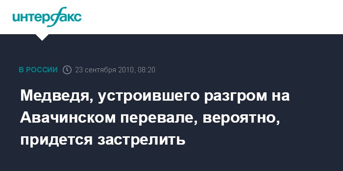 Петропавловск-Камчатский. 23 сентября. INTERFAX.RU - Медведь, обосновавшийся в районе популярного у туристов Авачинского перевала на Камчатке, совсем освоился и представляет реальную угрозу для людей.