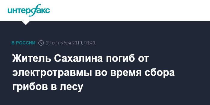 Южно-Сахалинск. 23 сентября. INTERFAX.RU - На Сахалине ведется проверка по факту гибели 40-летнего мужчины от удара током в лесном массиве в 2 км от поселка Дачное, сообщили в четверг агентству "Интерфакс" в пресс-службе следственного управления СКП РФ по региону.