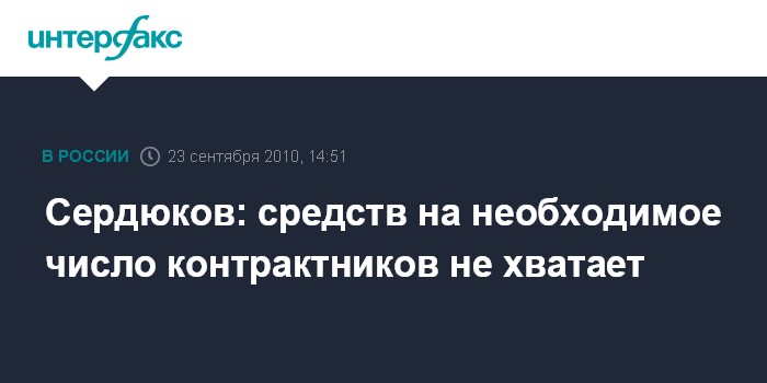 Санкт-Петербург. 23 сентября. INTERFAX.RU - В министерстве обороны РФ испытывают недостаток средств для комплектования вооруженных сил контрактниками, сообщил глава ведомства Анатолий Сердюков.
