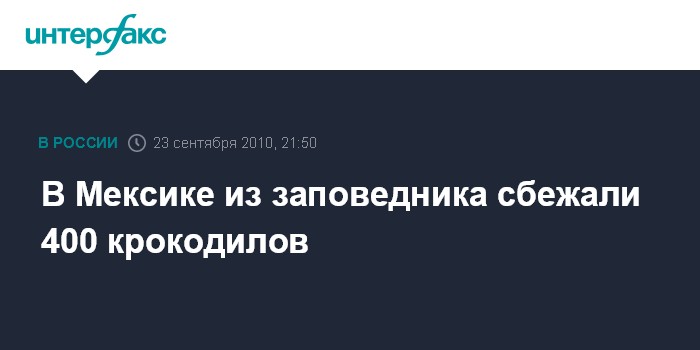 Мехико. 23 сентября. INTERFAX.RU - Мексиканские охотники за крокодилами поймали 100 из 400 рептилий, сбежавших из мексиканского заповедника "Колибри" в штате Веракрус, на юго-востоке страны, сообщило в четверг агентство ЭФЭ.