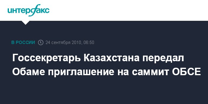 Как сообщает пресс-служба МИД Казахстана в пятницу, К.Саудабаев передал главе Белого дома личное приглашение президента Казахстана Нурсултана Назарбаева принять участие в саммите ОБСЕ в Астане 1-2 декабря.