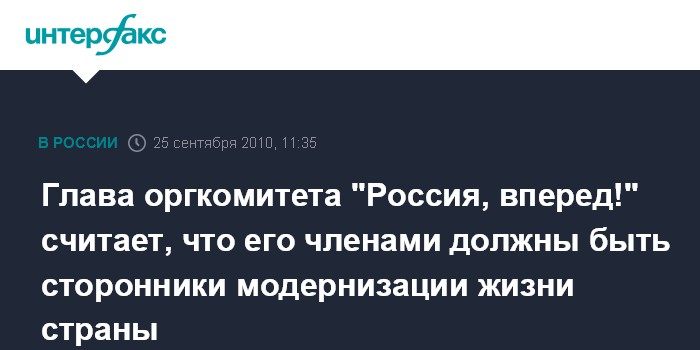 Глава оргкомитета "Россия, вперед!" считает, что его членами должны быть сторонники модернизации жизни страны