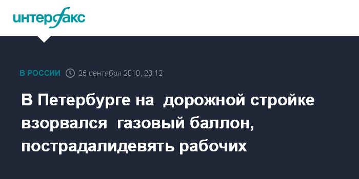 В Петербурге на дорожной стройке взорвался газовый баллон, пострадалидевять рабочих