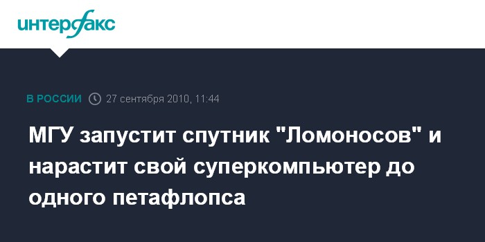 МГУ запустит спутник "Ломоносов" и нарастит свой суперкомпьютер до одного петафлопса