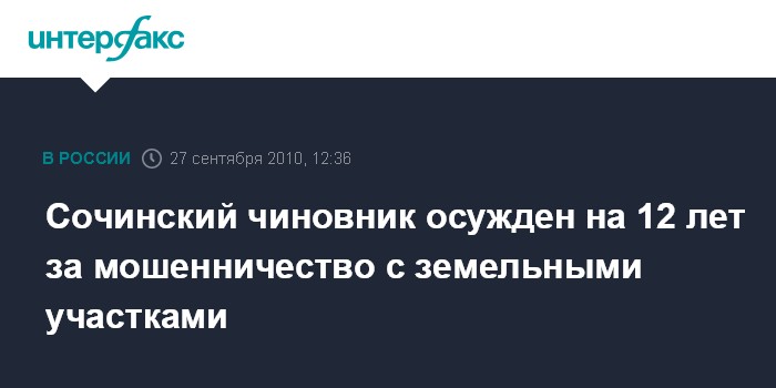 Сочинский чиновник осужден на 12 лет за мошенничество с земельными участками