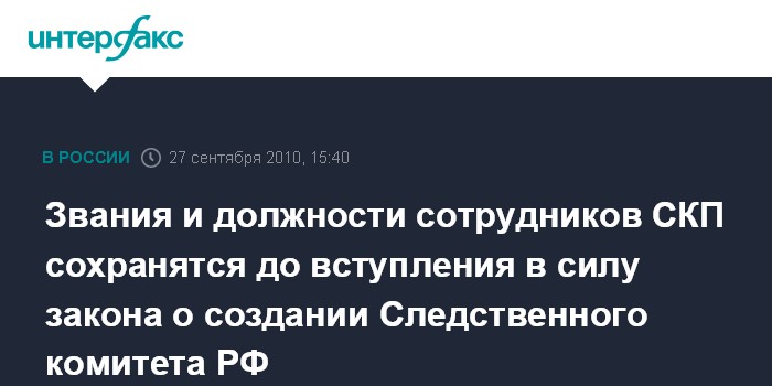 Звания и должности сотрудников СКП сохранятся до вступления в силу закона о создании Следственного комитета РФ