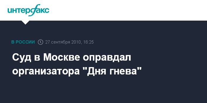 Москва. 27 сентября. INTERFAX.RU - Мировой участок Тверского района не нашел нарушений закона в действиях одного из организаторов протестной акции "День гнева" 12 сентября.