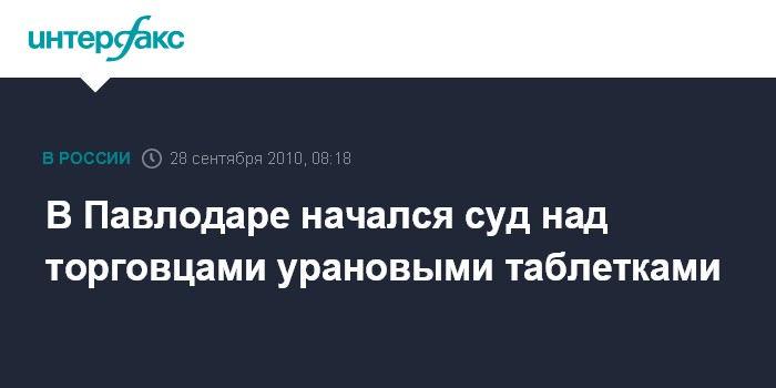 Павлодар. 28 сентября. INTERFAX.RU - В суде N2 Павлодара (адмцентр Павлодарской области Казахстана) начался судебный процесс по уголовному делу о сбыте партии урановых таблеток.