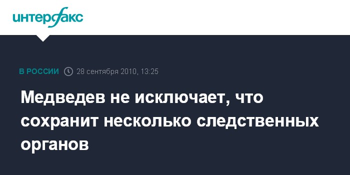 Шанхай. 28 сентября. INTERFAX.RU - Президент РФ Дмитрий Медведев не исключает как возможность создания единого Следственного комитета, так и сохранения нескольких следственных органов.