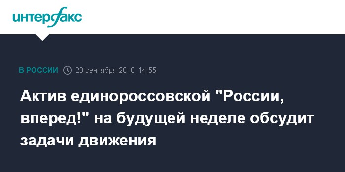 Актив единороссовской "России, вперед!" на будущей неделе обсудит задачи движения