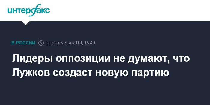 Москва. 28 сентября. INTERFAX.RU - Лидеры двух оппозиционных партий сомневаются, что бывший мэр Москвы Юрий Лужков, который выходит из "Единой России", будет создавать свою собственную политическую организацию.