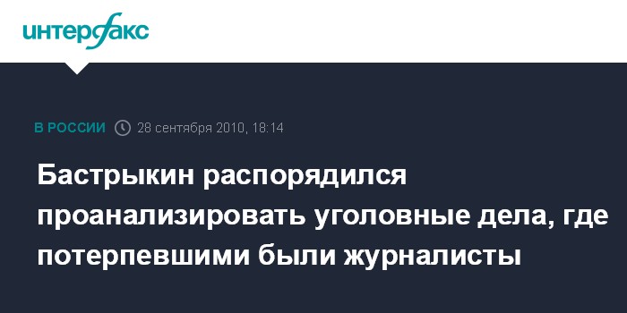 Москва. 28 сентября. INTERFAX.RU - Председатель Следственного комитета Александр Бастрыкин поручил проанализировать материалы всех уголовных дел, в том числе прекращенным, о преступлениях в отношении журналистов, сообщил "Интерфаксу" официальный представитель Следственного комитета Владимир Маркин.