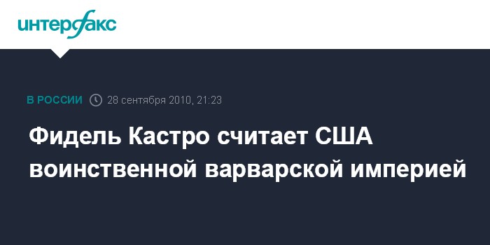 Мадрид. 28 сентября. INTERFAX.RU - Бывший кубинский лидер Фидель Кастро во вторник выступил с резкой критикой США, назвав их "варварской империей", сообщают испанские СМИ.