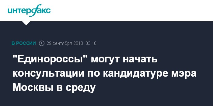 Москва. 29 сентября. ИНТЕРФАКС-МОСКВА - Руководство московского отделения партии "Единая Россия" уже в среду планирует начать консультации по будущим кандидатурам на пост столичного градоначальника, сообщила "Интерфаксу" секретарь политсовета городского отделения "Единой России" Елена Панина.
