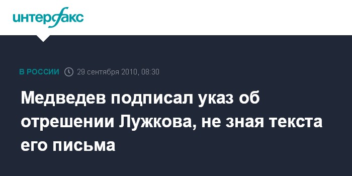 Медведев подписал указ об отрешении Лужкова, не зная текста его письма