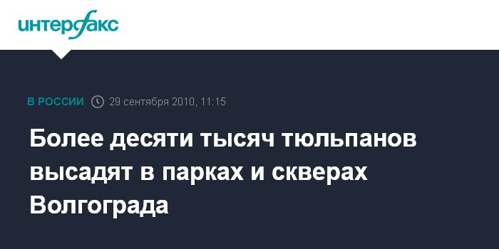 Волгоград. 29 сентября. INTERFAX.RU - В Волгограде по инициативе городского Совета женщин будут высажено более 10 тысяч тюльпанов, сообщили агентству "Интерфакс" в пресс-службе мэрии.