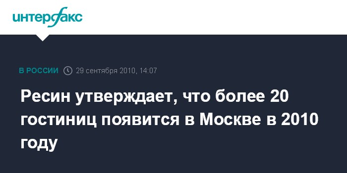 Ресин утверждает, что более 20 гостиниц появится в Москве в 2010 году
