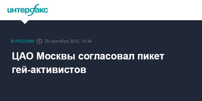 Москва. 29 сентября. INTERFAX.RU - Префектура Центрального административного округа Москвы согласовала проведение публичного мероприятия гей-активистов с призывом к бойкоту авиакомпании Swiss Airlines, сообщили "Интерфаксу" в префектуре в среду.