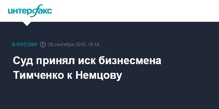 Москва. 29 сентября. INTERFAX.RU - Замоскворецкий суд Москвы принял к рассмотрению иск бизнесмена Геннадия Тимченко к авторам доклада "Путин. Итоги. 10 лет" о защите чести и достоинства с требованием опровергнуть ряд высказываний, содержащихся в брошюре.