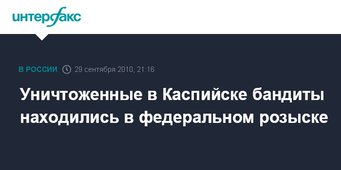 Москва. 29 сентября. INTERFAX.RU - По меньшей мере четверо из уничтоженных в дагестанском Каспийске боевиков находились в федеральном розыске за совершение преступлений, связанных с терроризмом, сообщил Информационный центр Национального антитеррористического комитета (НАК).