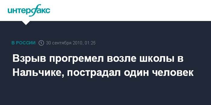 Нальчик. 30 сентября. ИНТЕРФАКС-ЮГ - Взрыв прогремел в ночь на четверг в столице Кабардино-Балкарии Нальчике.