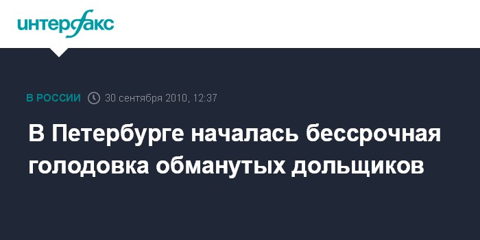 Санкт-Петербург. 30 сентября. INTERFAX.RU - Обманутые дольщики жилого дома на проспекте Пятилеток, 13 в Петербурге в четверг начали голодовку.